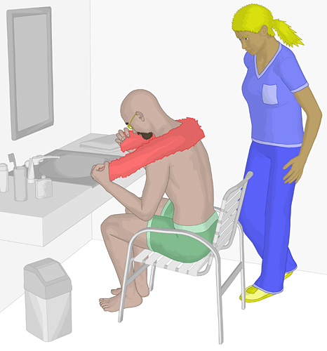 abgetrocknet. Dieses kann der Klient zumeist selbst durchführen, wenn