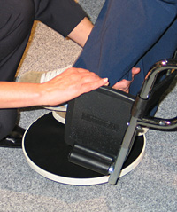 auf der Auflagefläche des Rollstuhls aufliegen. Der Auflagedruck wird